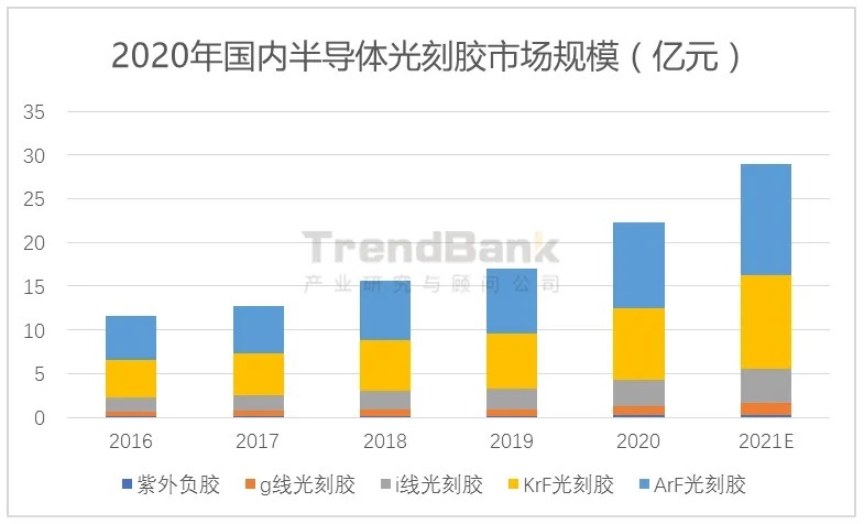 勢銀(TrendBank)研(yan)究統計分(fen)析,2021年國内(nei)半導體光(guang)刻膠市場(chang)規模将達(da)到29億人民(min)币。