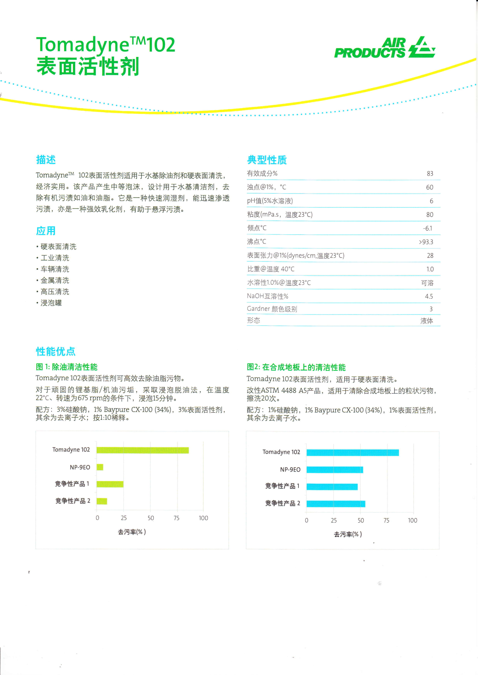 Tomadyne 102表面(mian)活性劑适(shi)用于水基(ji)除油劑和(he)硬表面清(qing)洗,經濟實(shi)🥑️用。 該産品(pin)産生中等(deng)泡沫,設計(ji)用于水基(ji)清潔劑,去(qu)除有🧑🏽❤️💋🧑🏻機污(wu)漬如👨🦰油和(he)油脂。 它是(shi)— 種快速潤(run)濕劑,能迅(xun)速滲透污(wu)漬,亦是一(yi)種強效乳(ru)化劑,有助(zhu)于懸😁浮污(wu)漬。