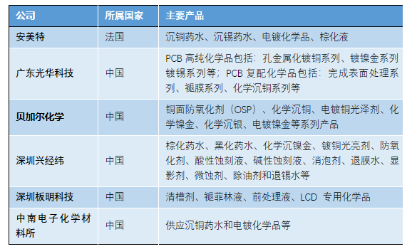 國(guo)内PCB化(hua)學品(pin)行業(ye)主要(yao)本土(tu)品牌(pai)企業(ye)有光(guang)華科(ke)技、貝(bei)加爾(er)化學(xue)、深圳(zhen)興經(jing)緯、深(shen)圳闆(pan)明科(ke)技等(deng),海外(wai)廠商(shang)有安(an)美🏊🏾♀️特(te)等。