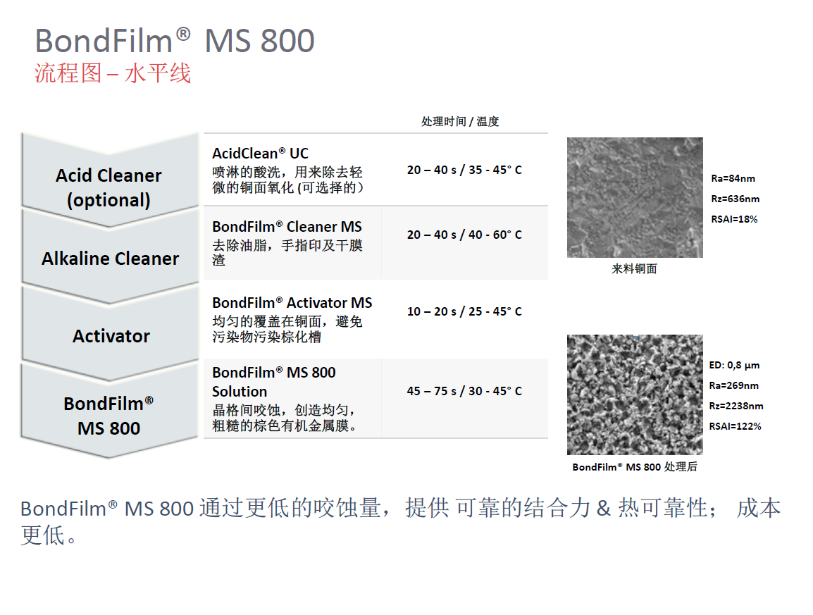 BondFilm® MS 800通(tong)過更(geng)低的(de)咬蝕(shi)量,提(ti)供可(ke)靠的(de)結合(he)力 & 熱(re)可靠(kao)性; 成(cheng)本更(geng)低。