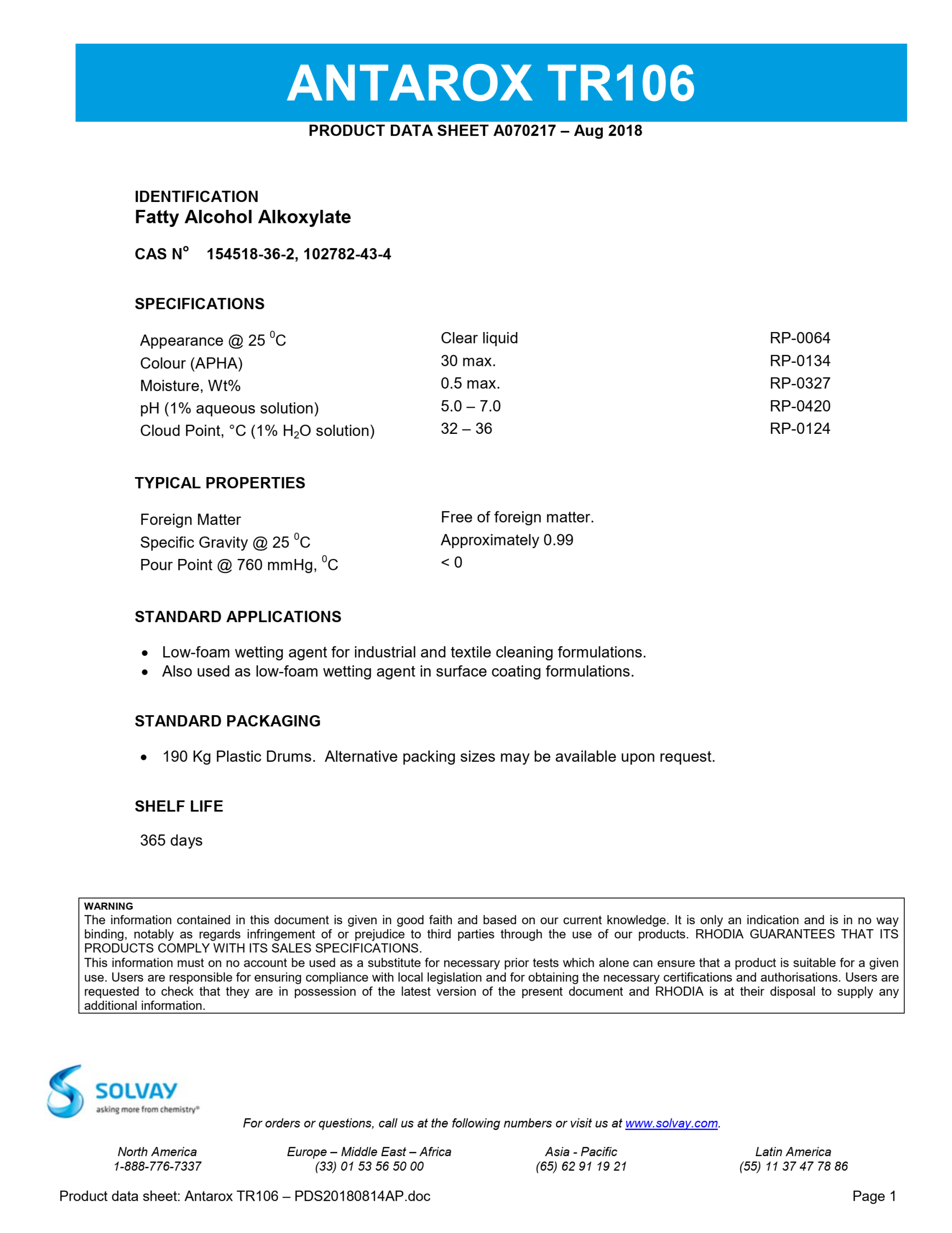 Cloud Point, °C (1% H2O solution) 32 – 36 RP-0124