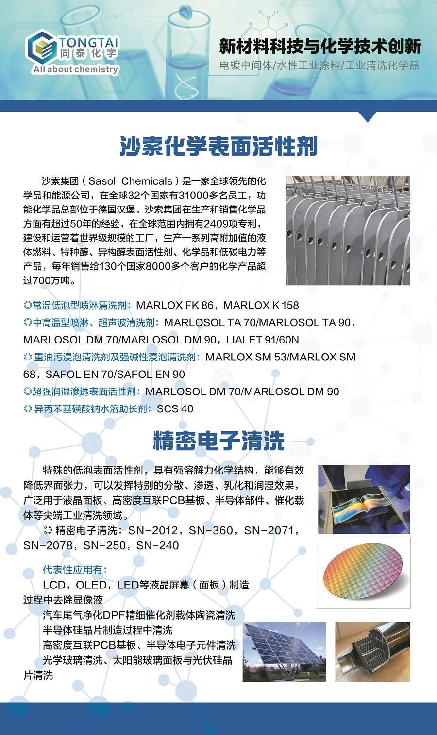 沙(sha)索化(hua)學表(biao)面活(huo)性劑(ji):Marlowet 5056,FK 86,SCS 40,TA 70, TA 90, EN 70, EN 90;