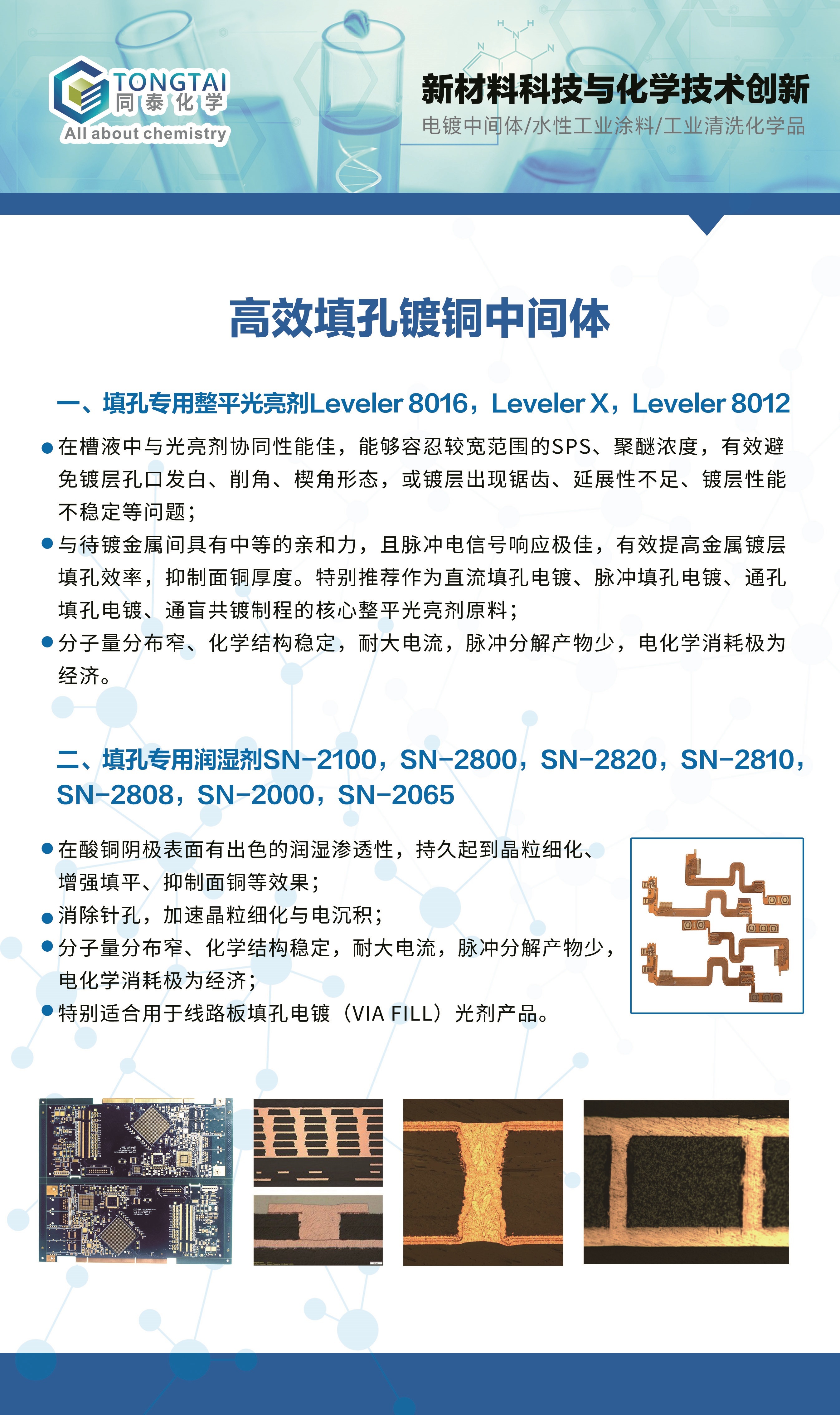 線路(lu)闆酸(suan)性鍍(du)銅中(zhong)間體(ti):PAS-A-5,Marlowet 5056,SN-2000,SN-2022,SN-2050,SN-2060,SN-2065,SN-2808,SN-2810,SN-2820,SN-2066,SN-2080,Leveler 8010,Leveler 8012,Leveler 8016,Leveler 8020,Leveler 8030,Leveler 8040, Leveler 8050, Leveler X;