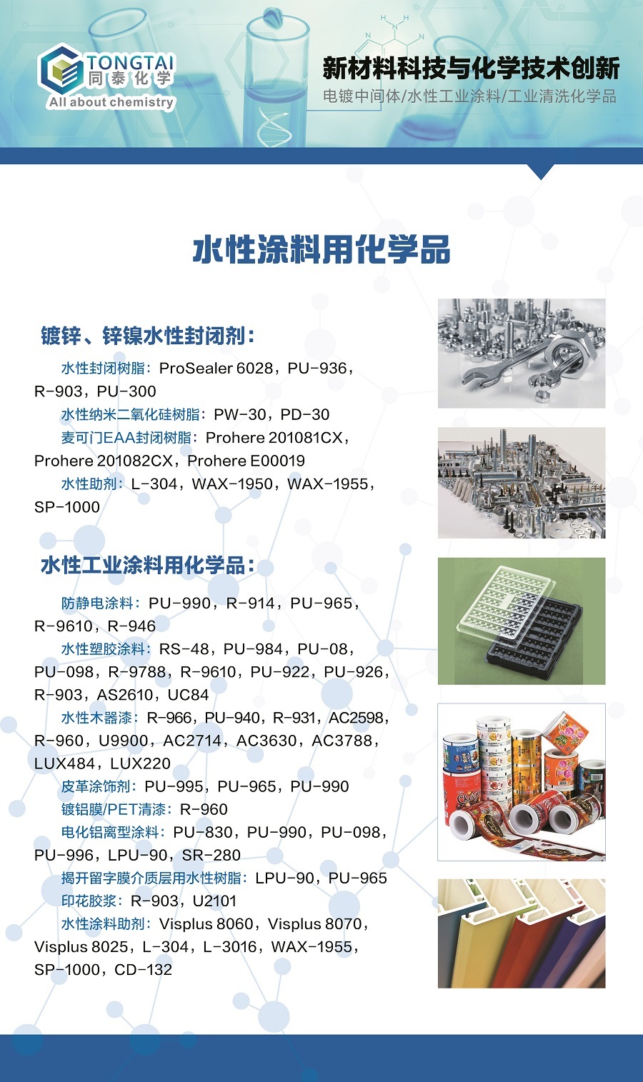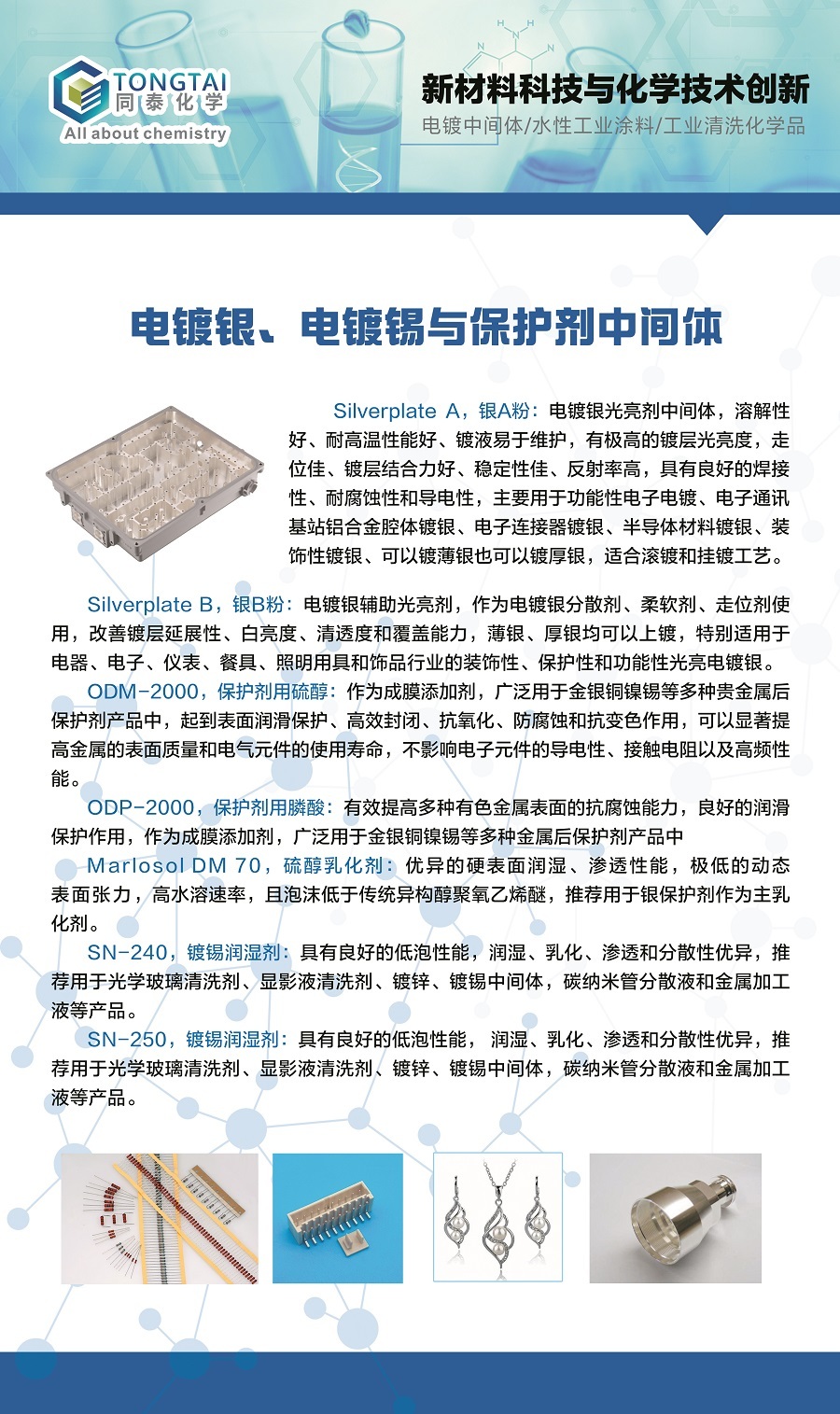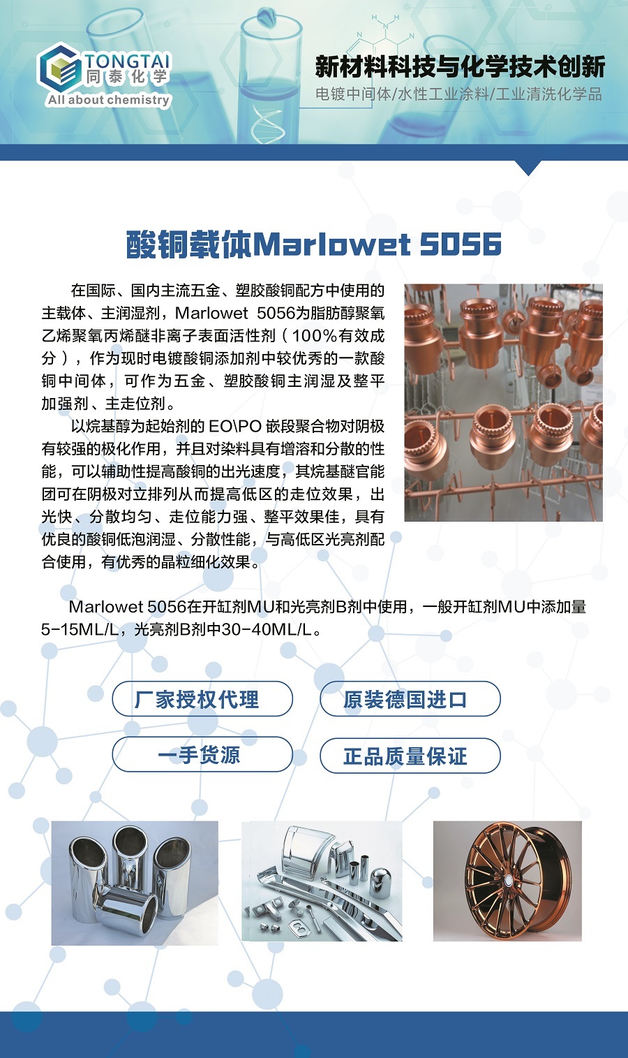 五金(jin)、塑膠(jiao)酸性(xing)鍍銅(tong)中間(jian)體:PAS-A-5,Marlowet 5056,SN-6011,SN-6008,SM-560,SN-2022,Leveler 8010,Leveler 8016,C-1800;
